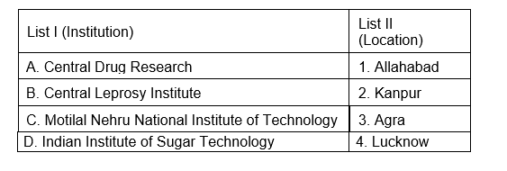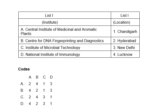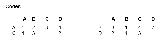 10. Match List I with List II and select the correct answer using the codes given below the lists.