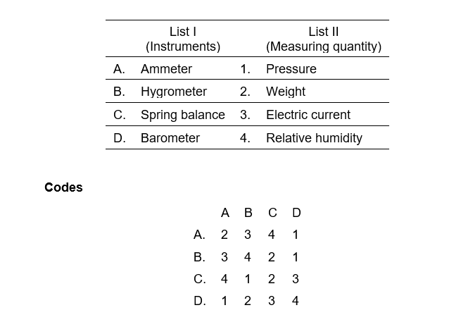 10. Match List I with List II and select the correct answer using the codes given below.