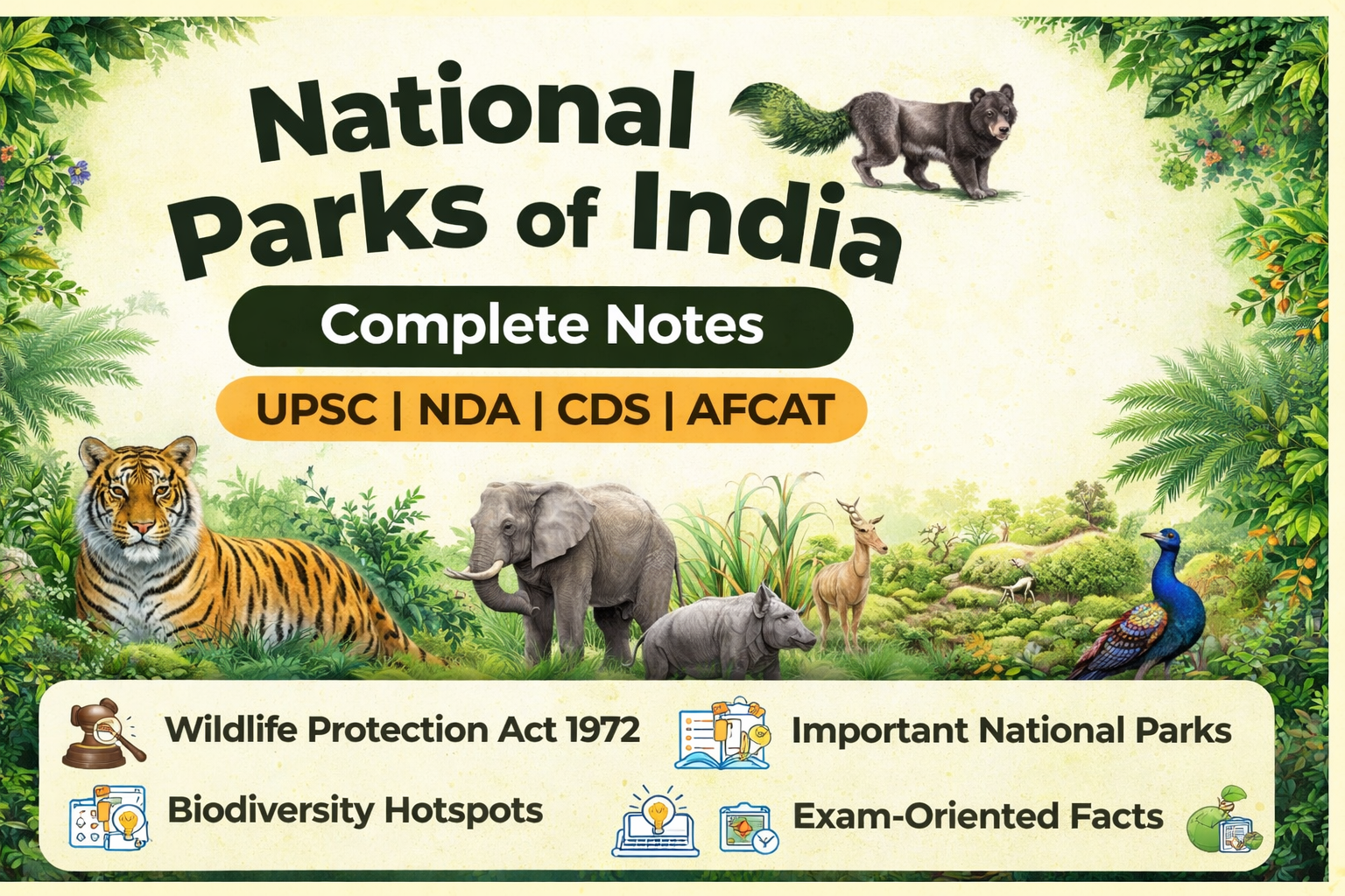 National Parks of India – Complete Notes (UPSC | NDA | CDS | AFCAT)